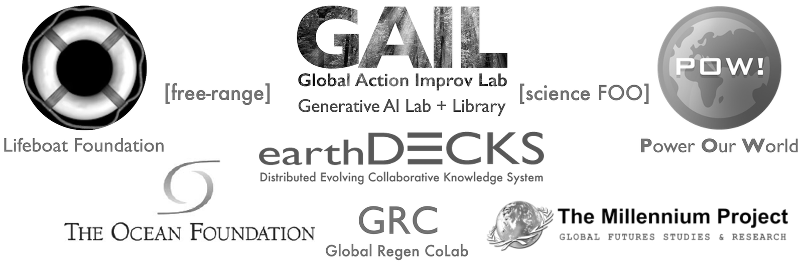 earthDECKS.org shows ocean plastic as a distributed supply chain that collaborative intelligence could address. earthDECKS Network (DECKS – Distributed Evolving Collaborative Knowledge System) hosts essays on environmental challenges. [free-range] and [science FOO] are private lists. GAIL.global focuses on beneficial A.I. GRC [Global Regeneration Colab] is a convening platform with a calendar and slack channel. The Lifeboat Foundation has a global network of thought leaders focusing on existential risk. The Millennium Project has 70+ nodes led by a global network of thought leaders focusing on global challenges. The Ocean Foundation is a fiscal sponsor highly rated on Charity Navigator and Platinum Level on GuideStar, working across three grand challenges: climate change, equity, and saving our ocean. Power Our World develops impact media.
